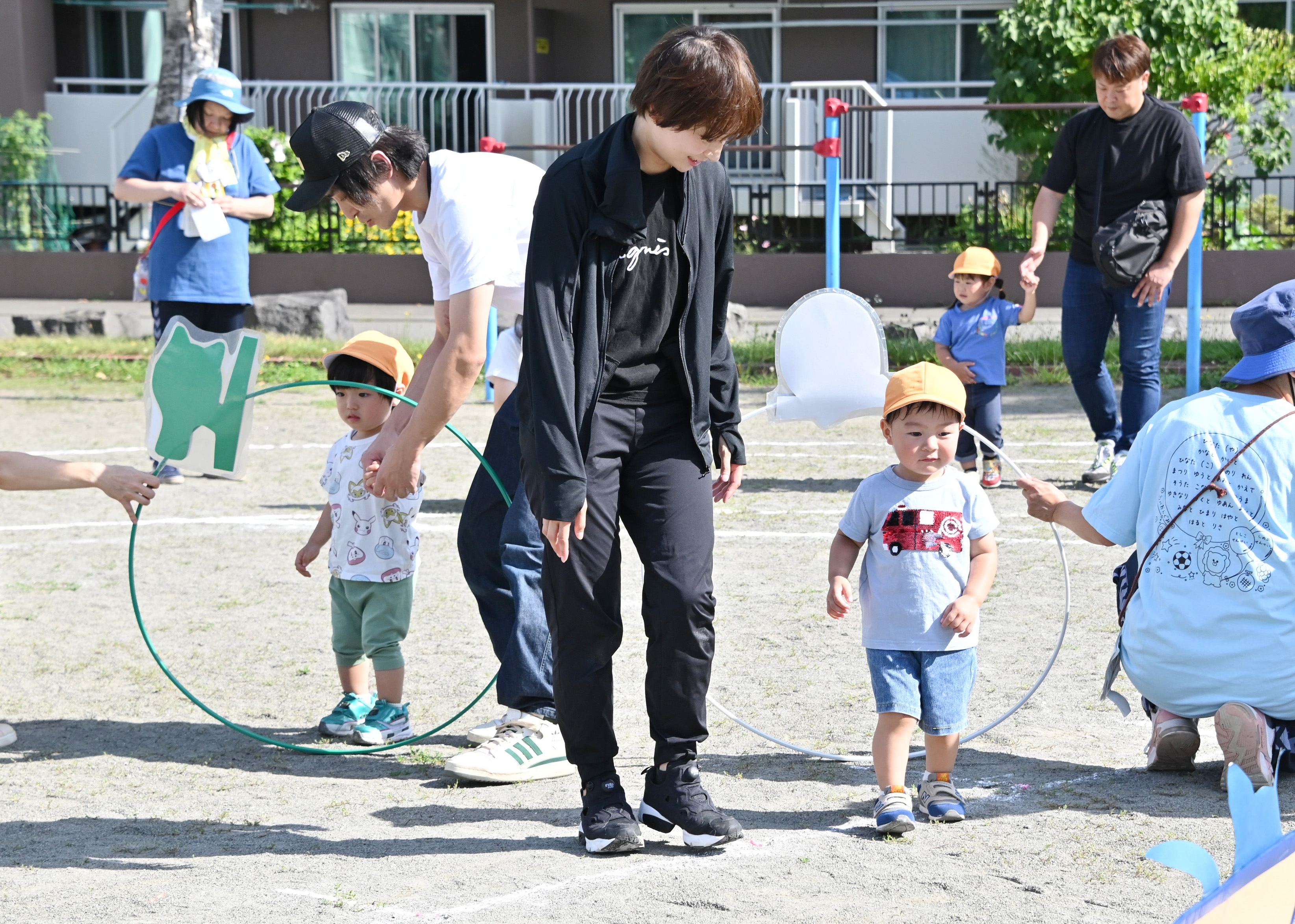 お父さん・お母さんと一緒に、フラフープくぐりや跳び箱山登りを楽しみました。