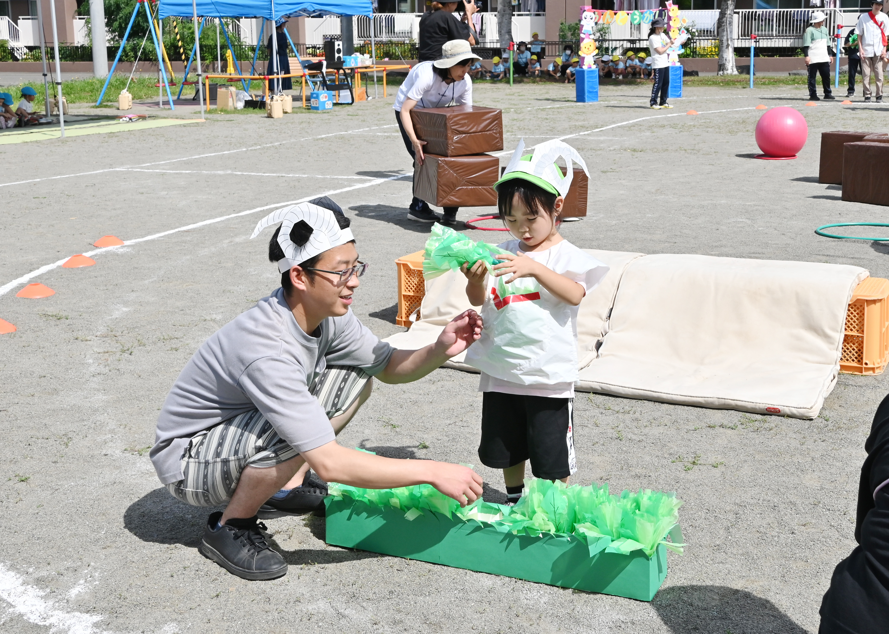 親子競技は、『三匹のヤギのガラガラドン』