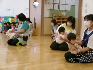 乳児クラスのお友だちは、『いもむしごろごろ』や『おすわりやす』で
