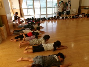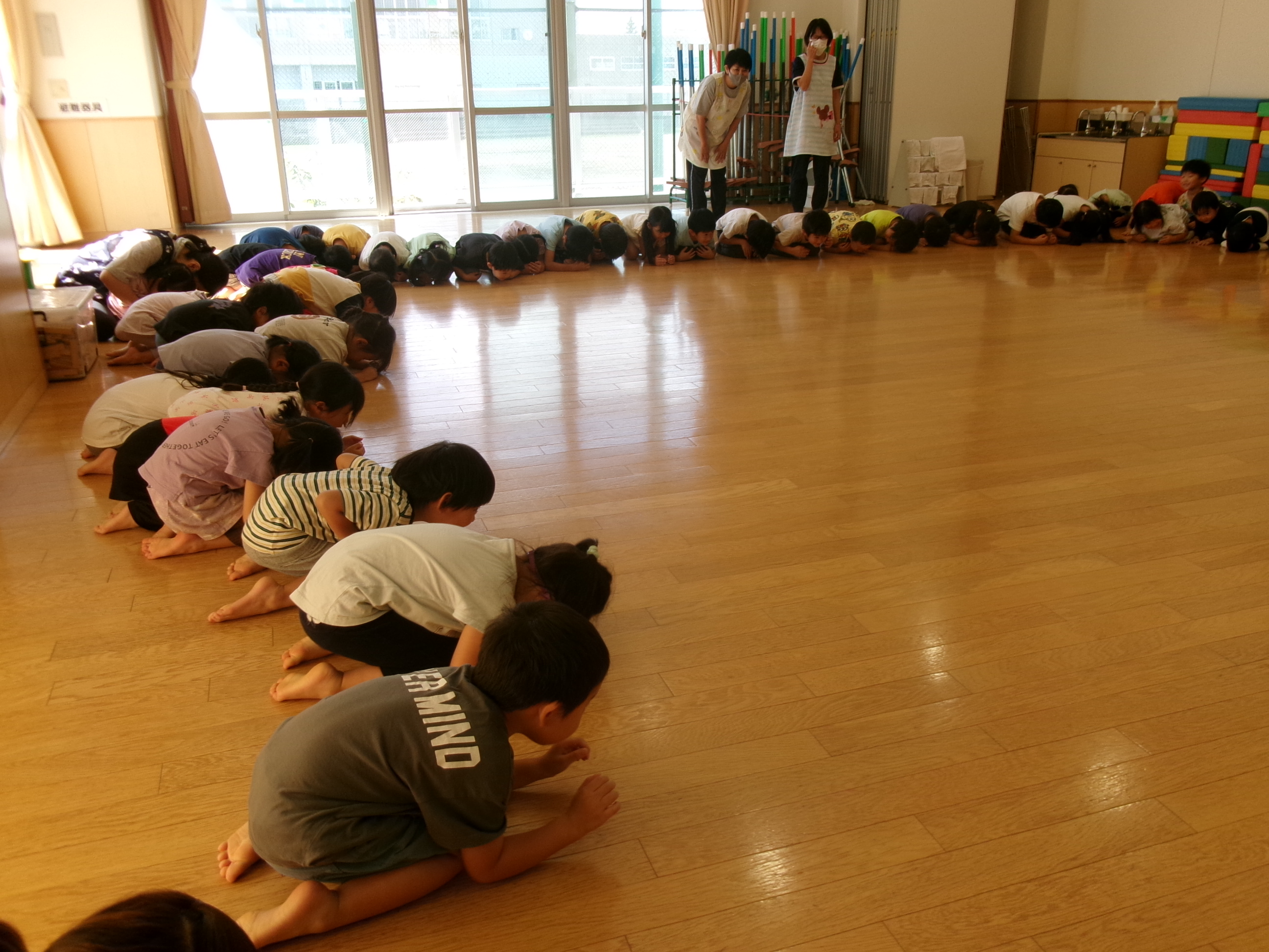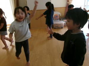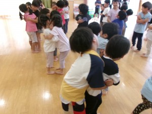 『ばかかばまぬけ』で、お友だちと抱き合って触れ合いを楽しみました。