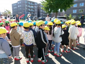 子どもたちは速やかに保育士のもとへ集まって避難を開始し、