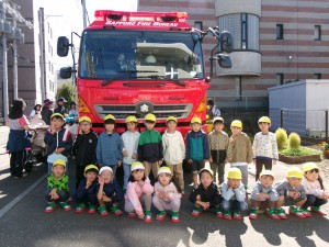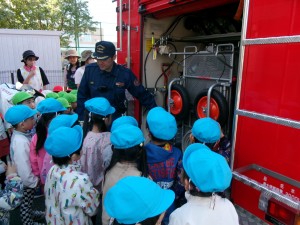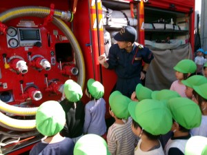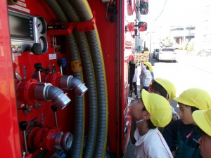 大きな消防車と記念撮影をしたり、消防車の見学もしました。