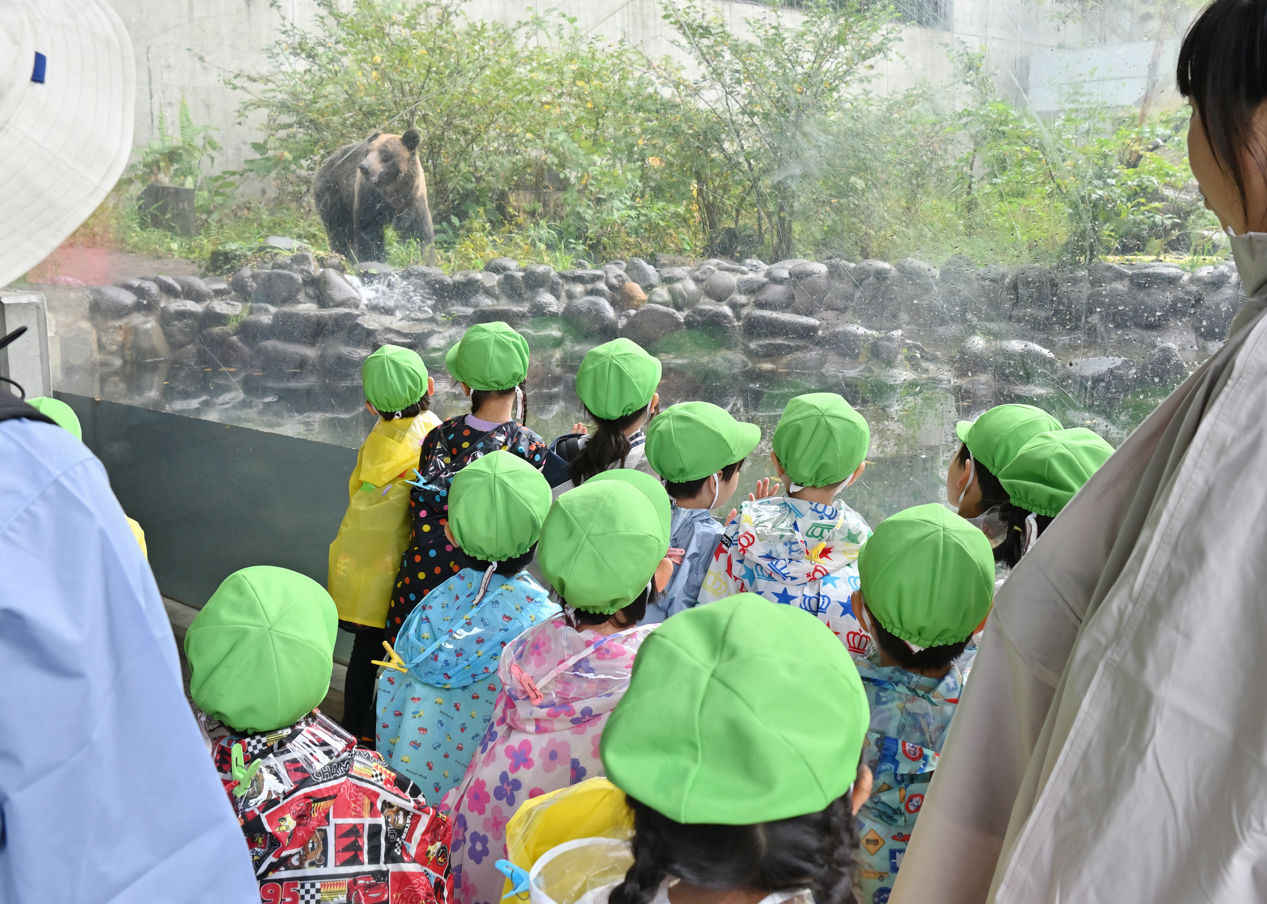 小雨でしたが、カッパを着て、園内を見学しました。