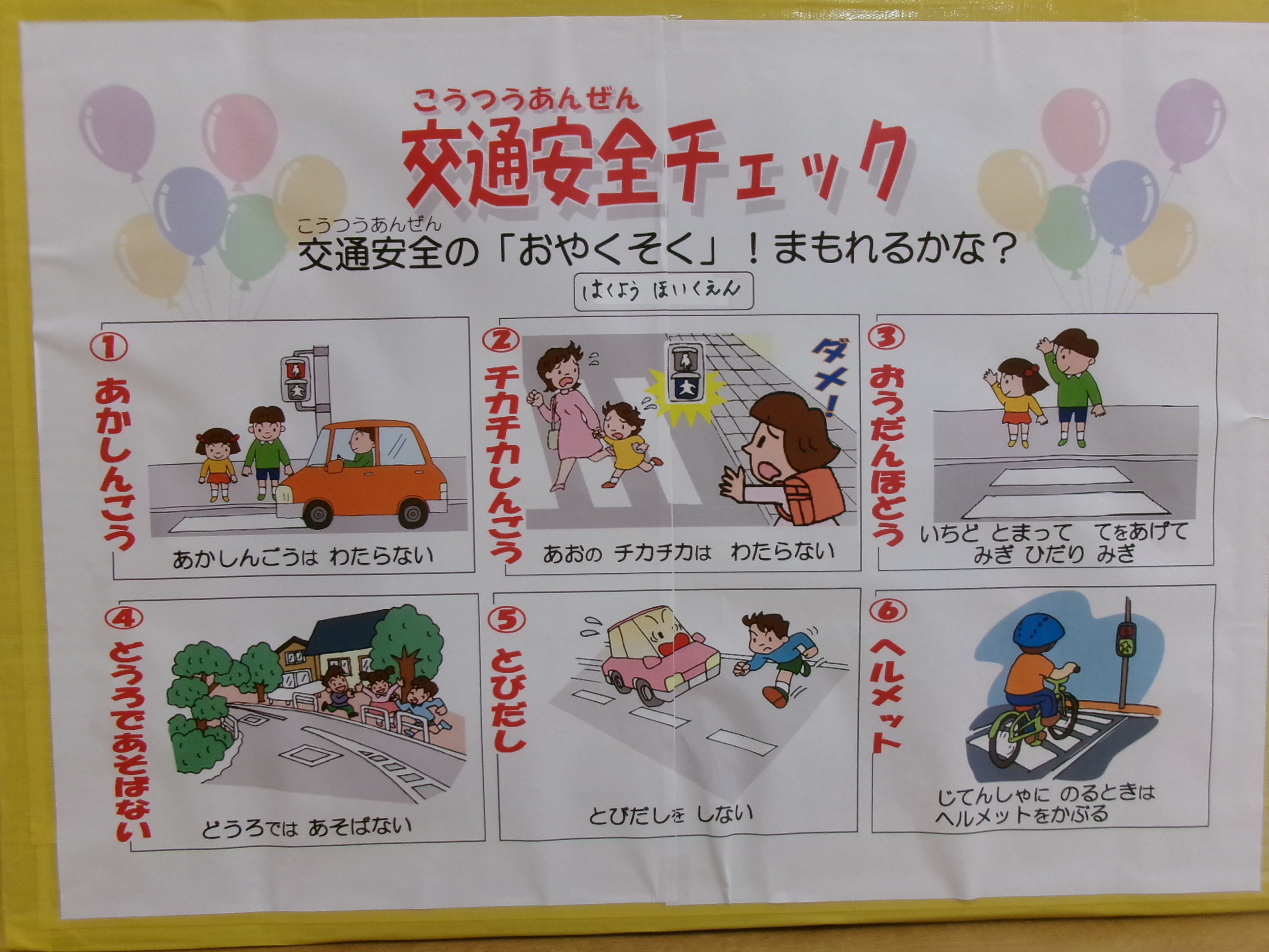 子どもたちが交通安全を意識しながら過ごせるよう、色々なお話をしました。