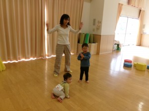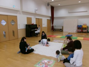 ピアノに合わせて季節の歌をうたったり、大型絵本や『エビカニクス』のダンスを