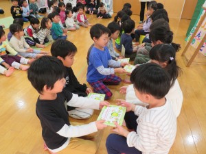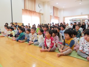 おいしいカステラを作るお話を真剣に見ていた子どもたち。