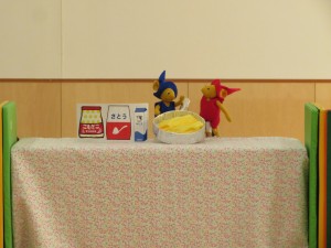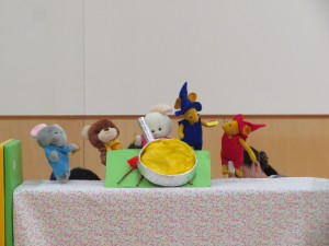 今日のお楽しみは、ぐりとぐらの人形劇でした。
