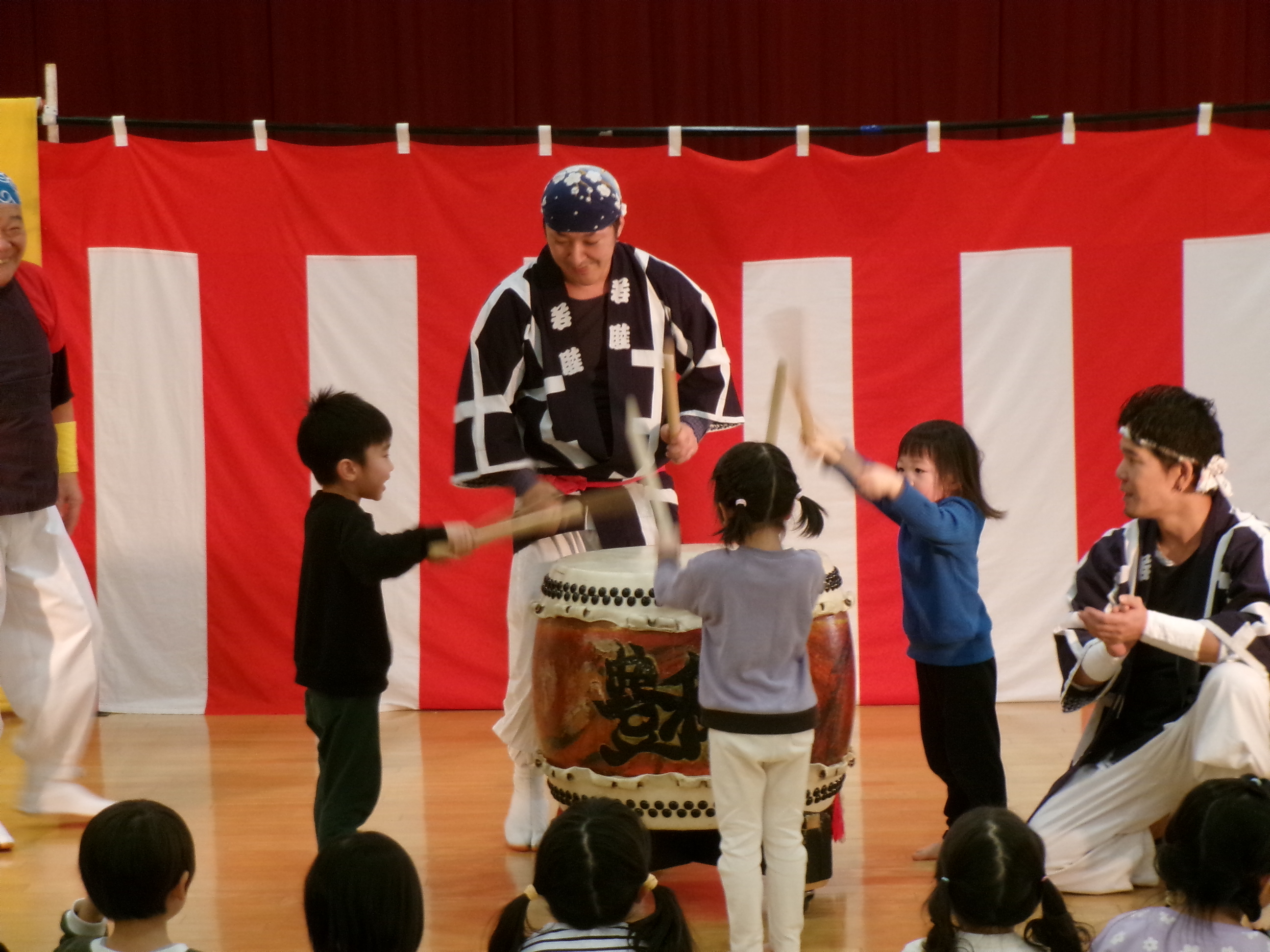 和太鼓に挑戦!思いきり、叩く子もいましたよ。