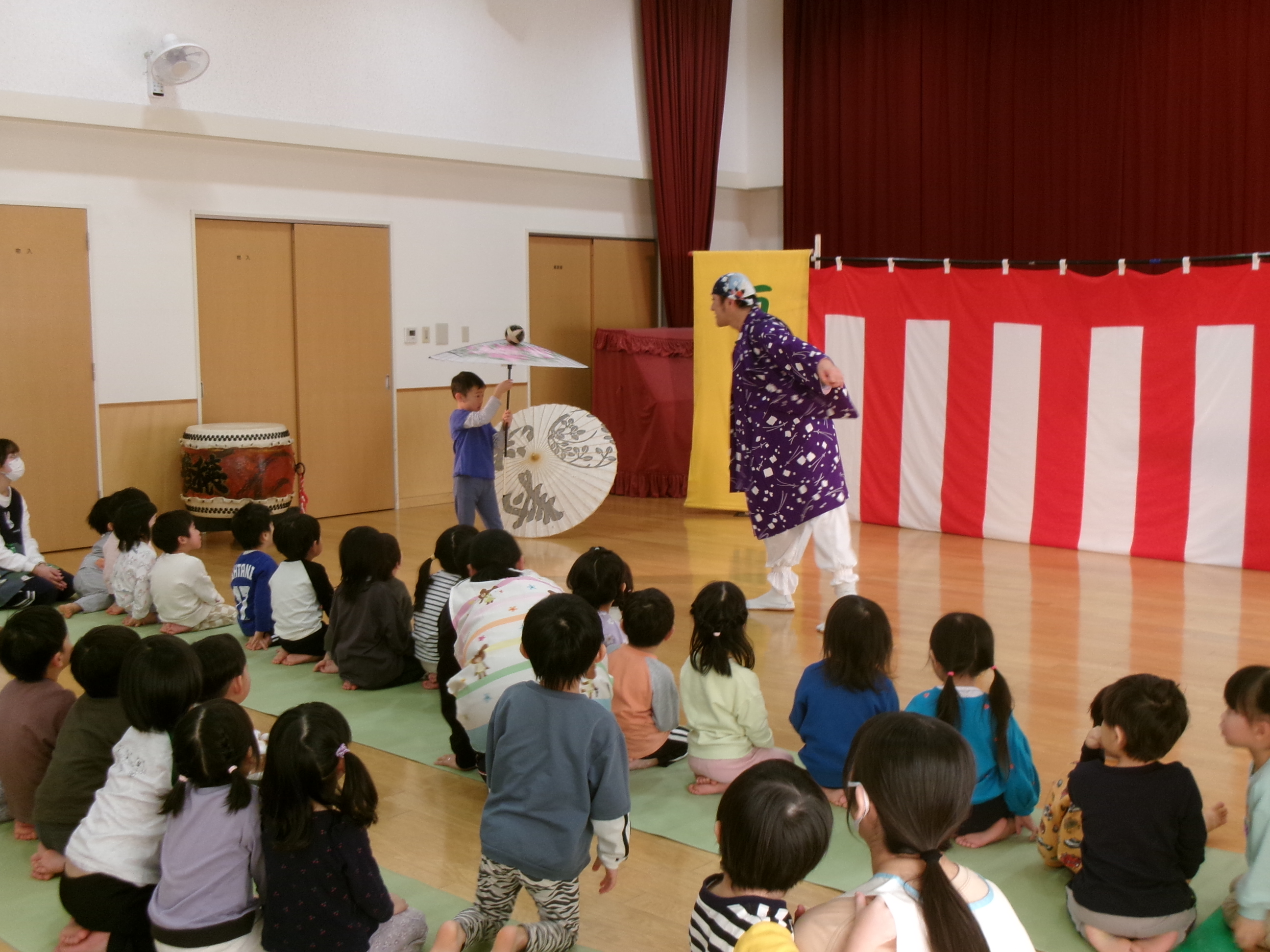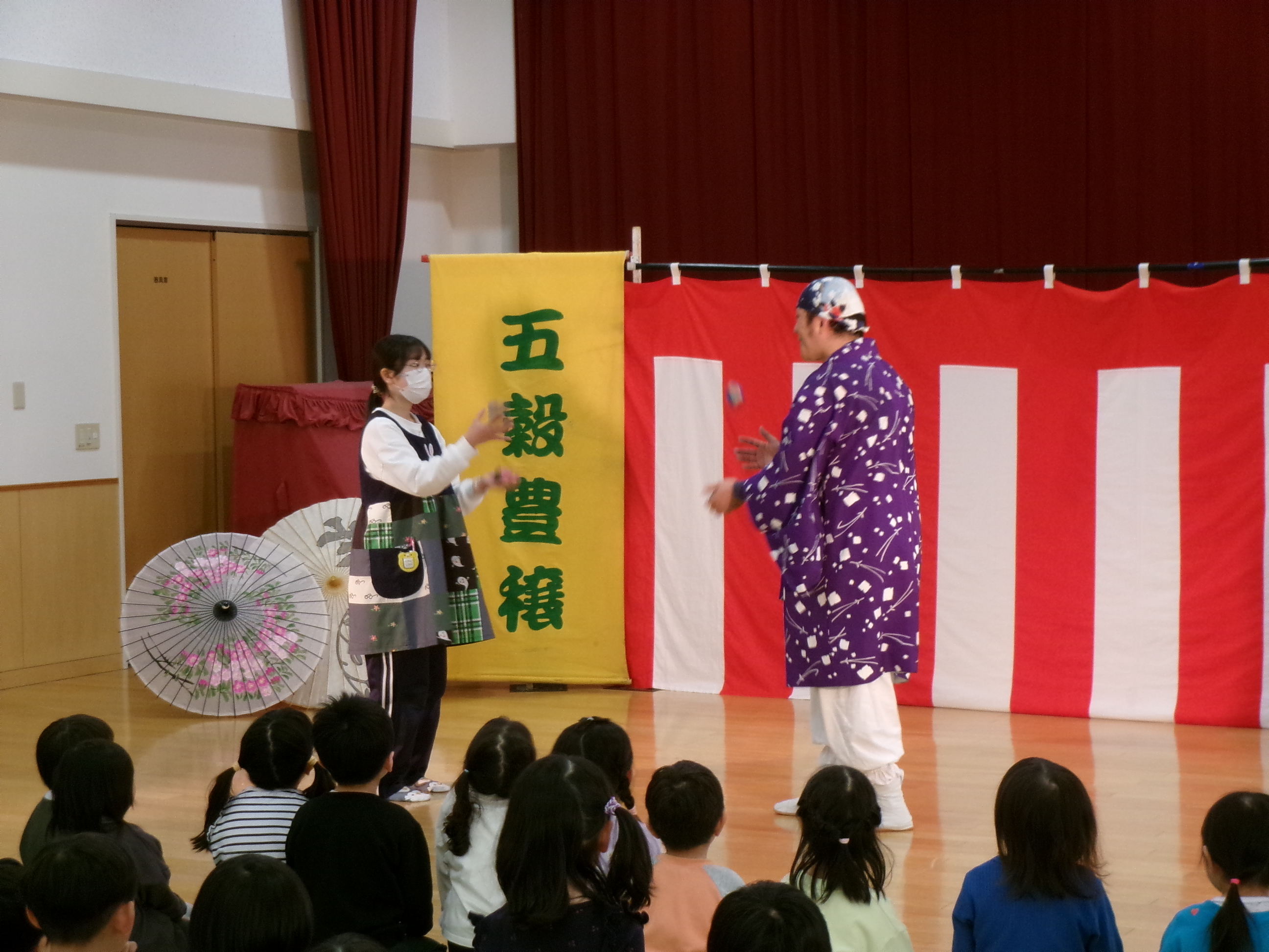 驚きのどよめきが起き、かさに玉が乗った時は、