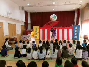 今度は、巨大な玉でかさ回し。玉が出てきた時は、