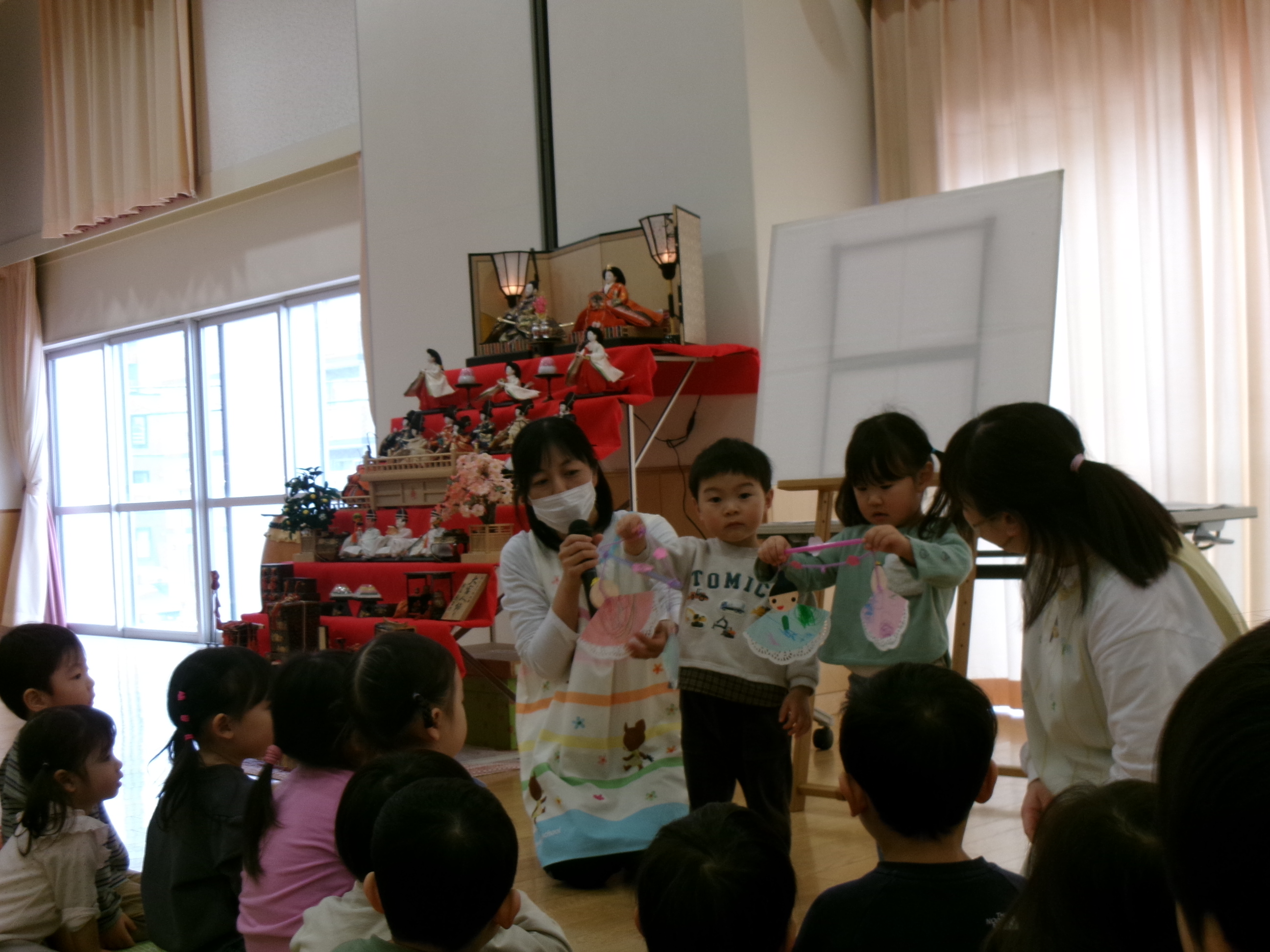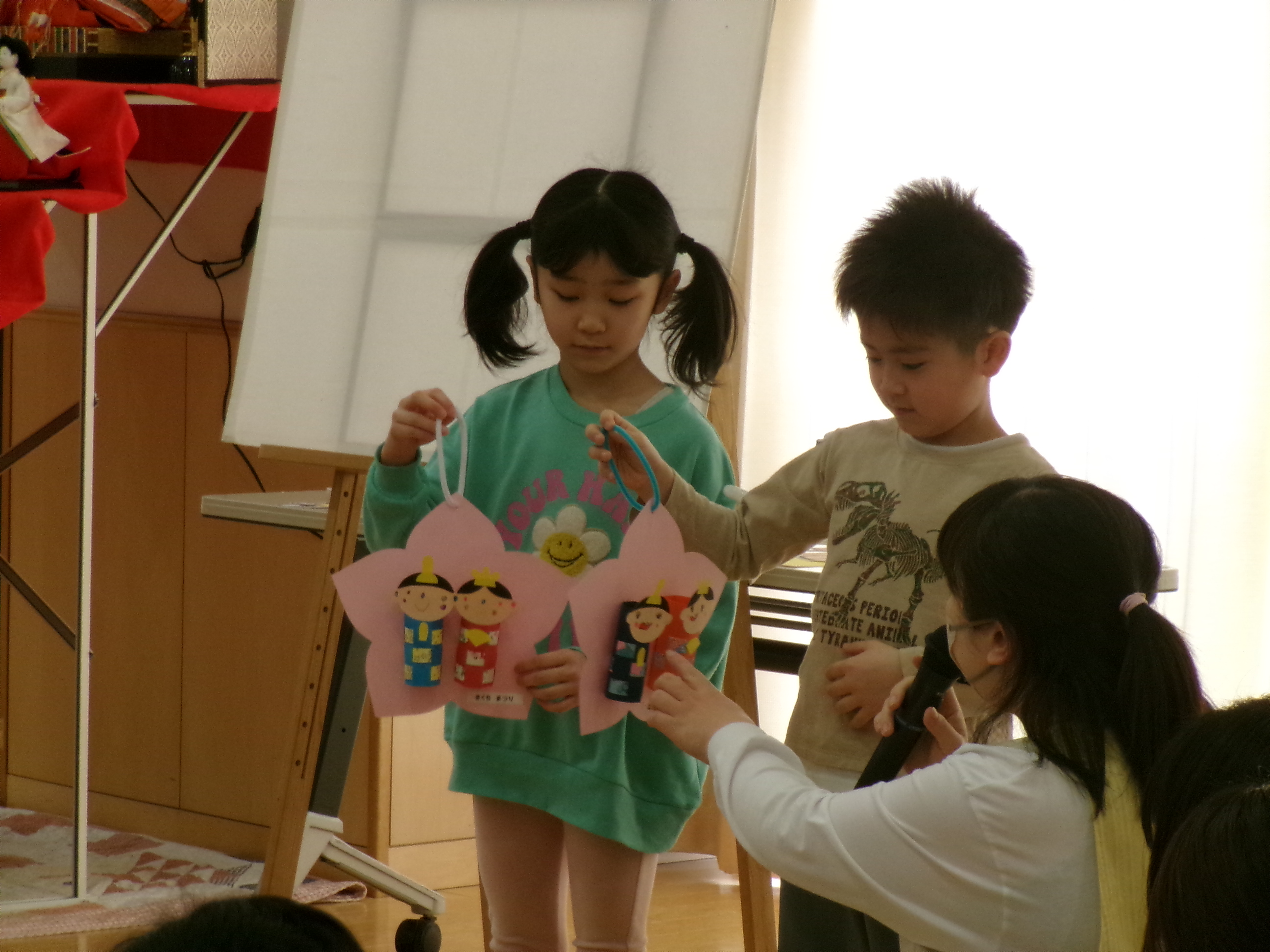 子どもたちが作ったお雛様の紹介をしました。