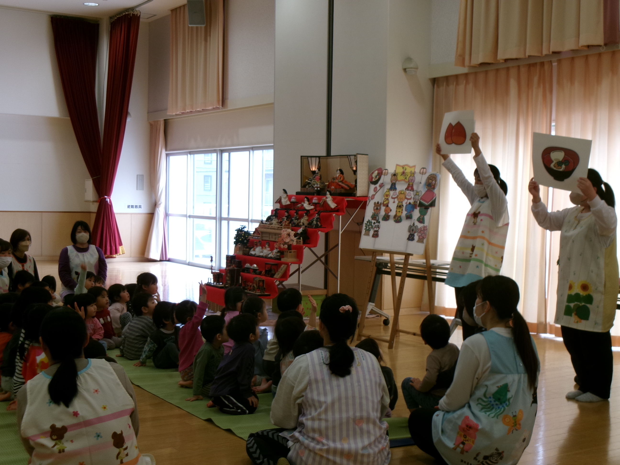 ひな人形になった動物たちが登場すると「可愛い!」と喜んでいた子どもたち。