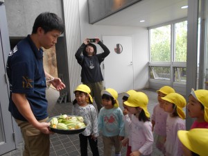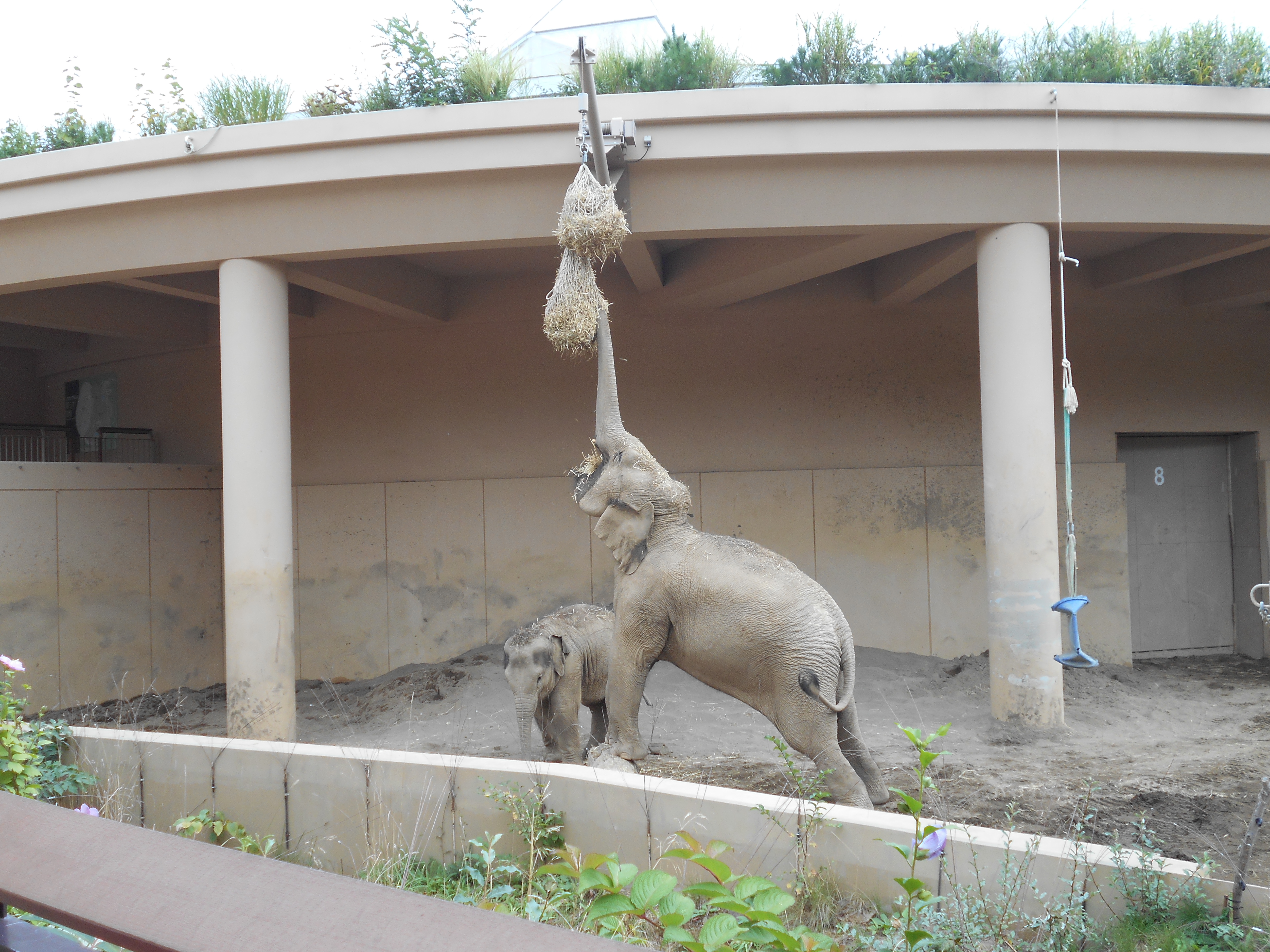桃組さんは、ゾウが鼻を伸ばして高い所にあるエサを食べる姿を見ることができました!