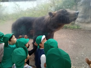緑組さんは、大きなヒグマをガラス越しに目の前で見ることができました。あまりの迫力に驚いて後ずさりする子もいましたが、近くで見れて大興奮でした。