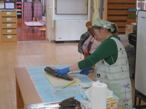 三枚におろした身を近くでみたり、少しだけ触らせてもらいました。