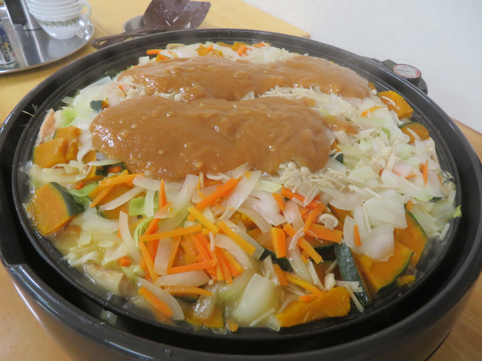 ちゃんちゃん焼きが完成し、今日はみんなでホールで食べました。