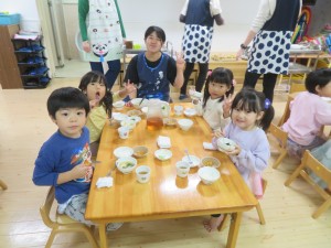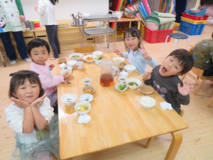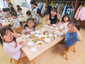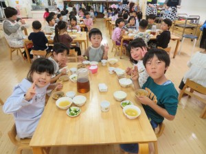 保育園中、ちゃんちゃん焼きのいい匂いがしていて子ども達も「いい匂い!」「お腹すいた~!」と完成を楽しみにしていました。