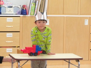 黄組のお友達は、大好きな消防車をレゴで作ってみんなに見せてくれました。