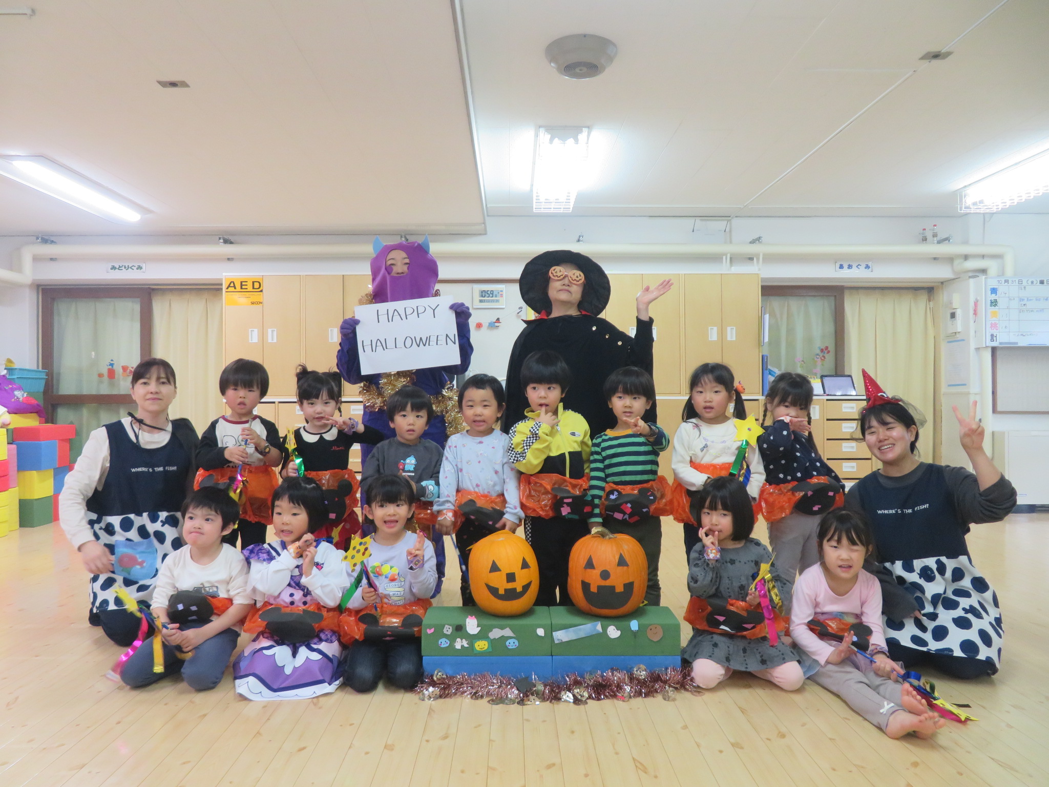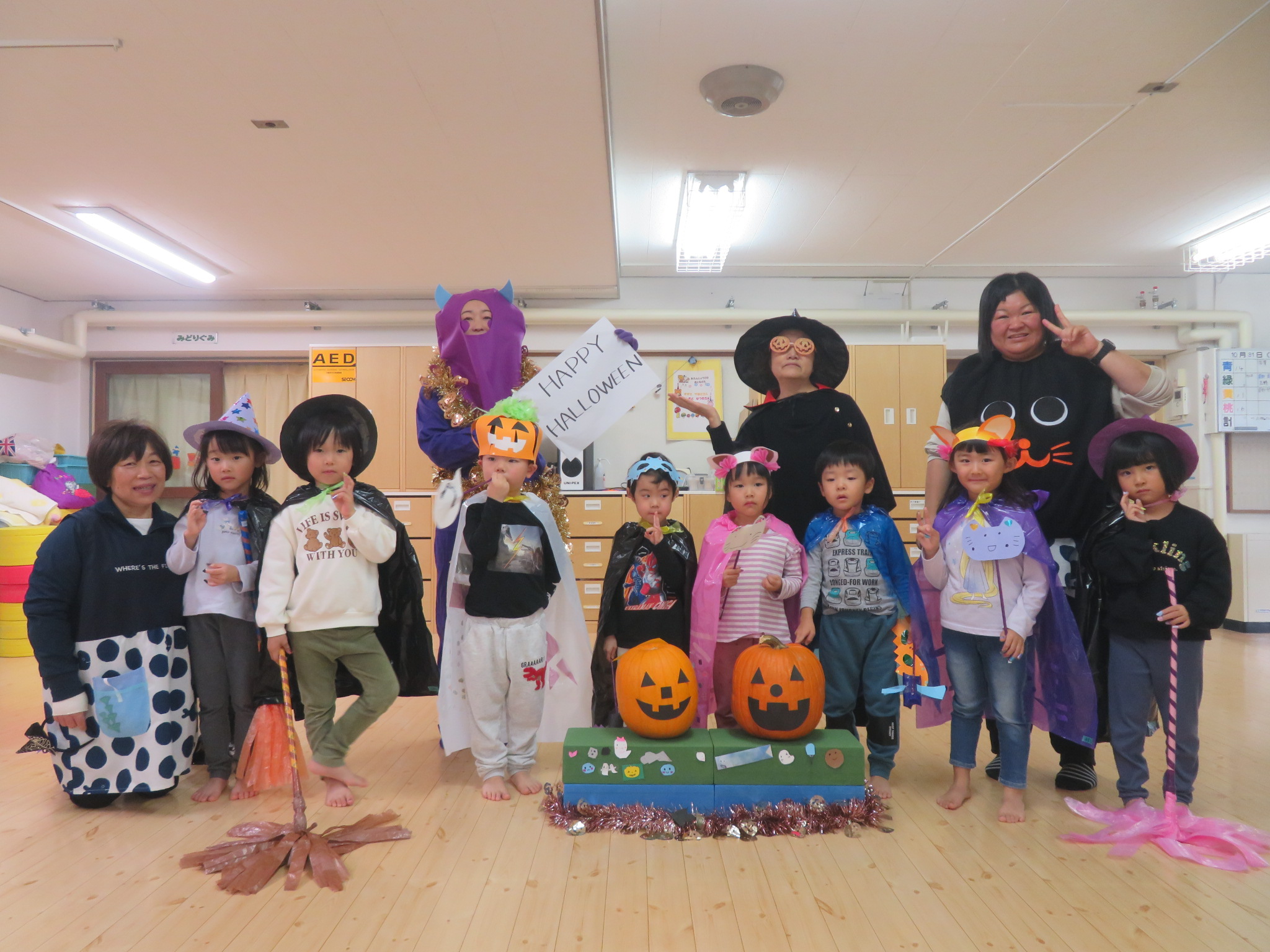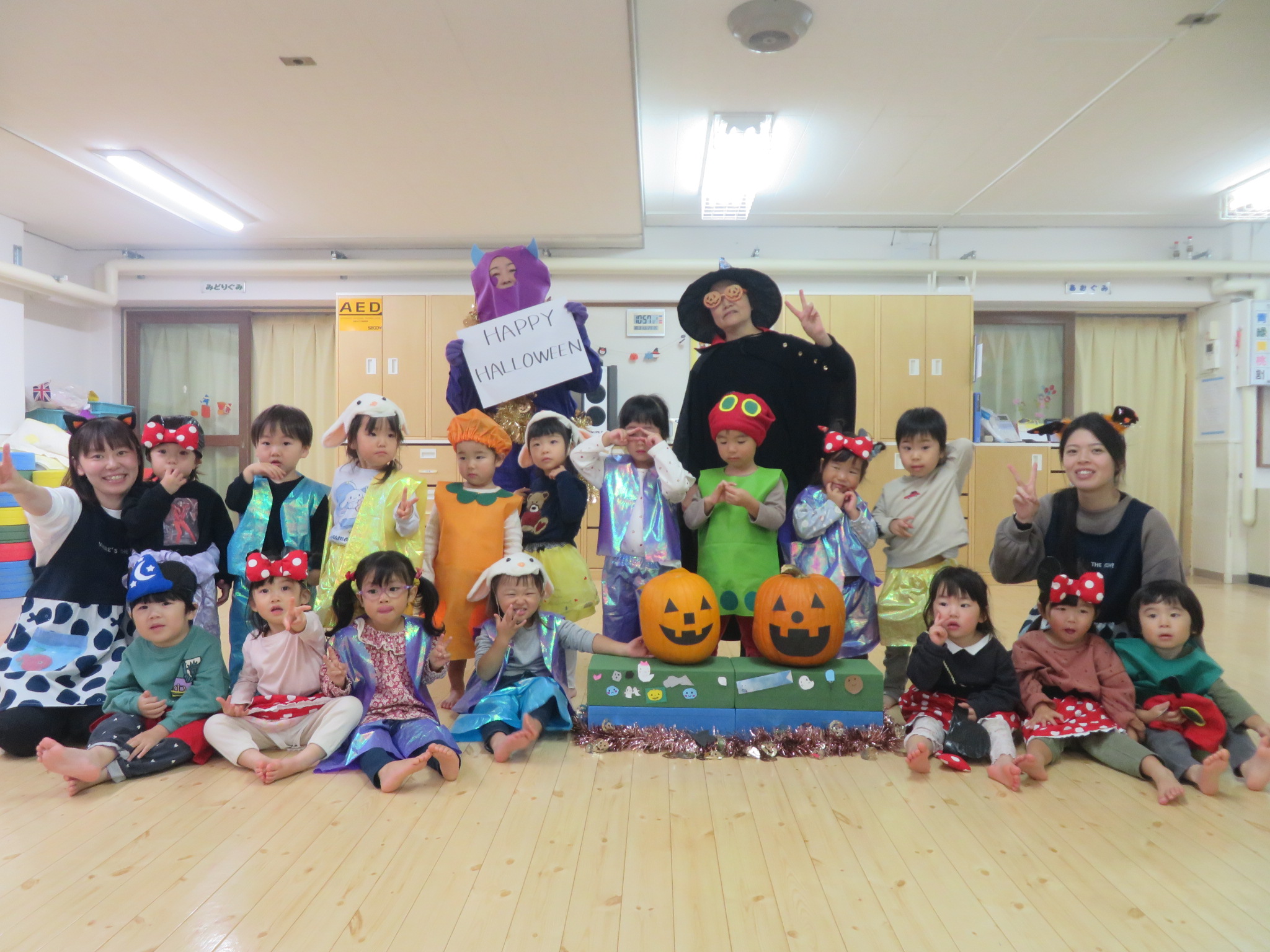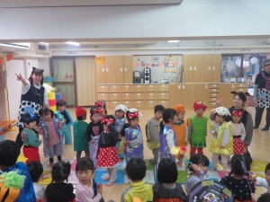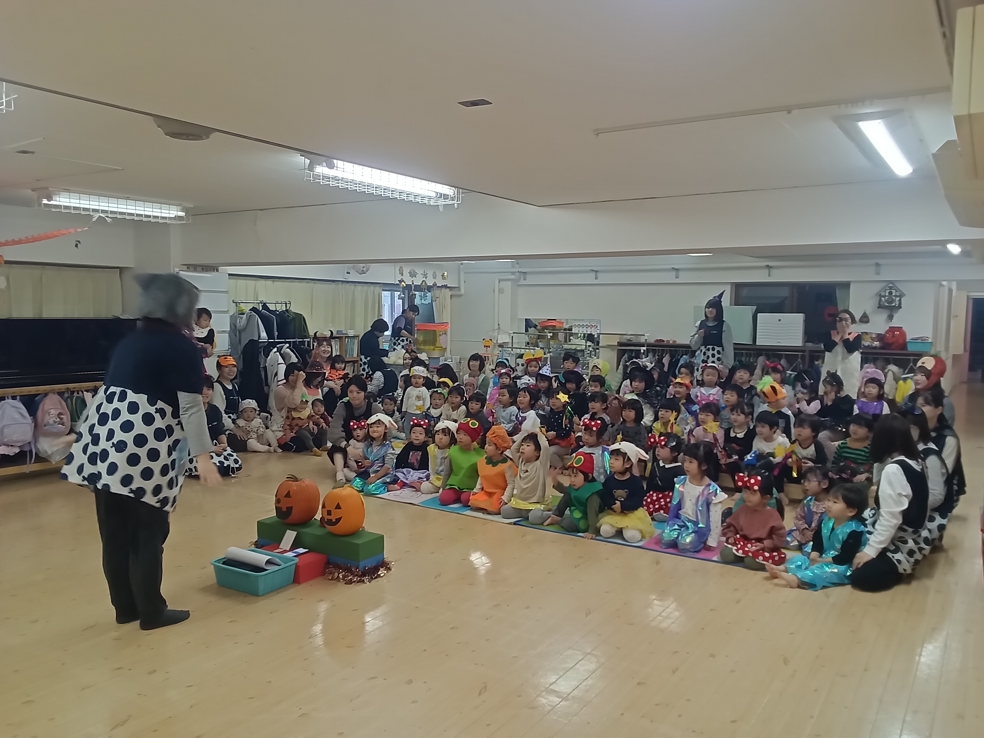 子ども達はハロウィンに向けて、衣装を製作してきました。それを身に着けてホールでハロウィンパーティーをしました!