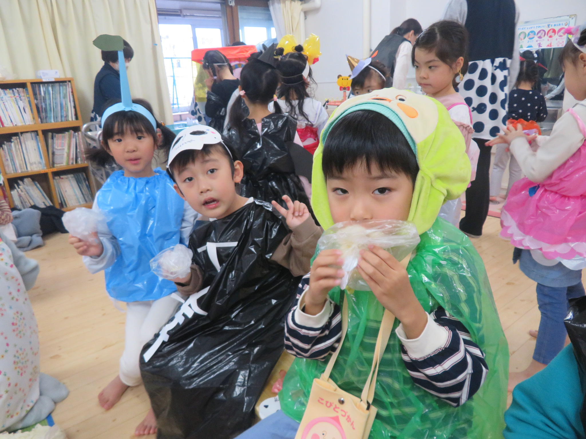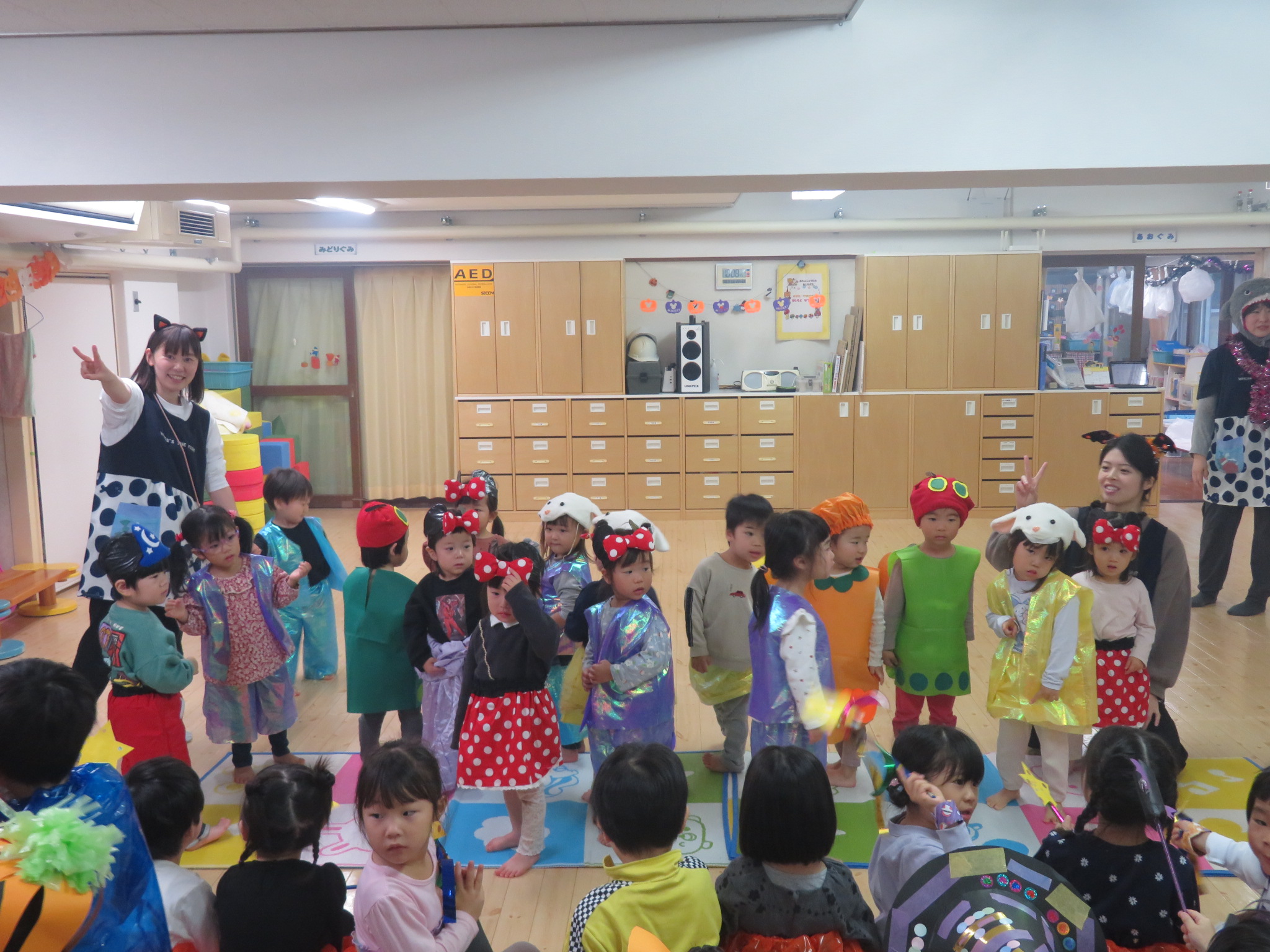 桃組さんは、はらぺこあおむし、動物、ミニーちゃん等、とても可愛らしい衣装を着ていました☆