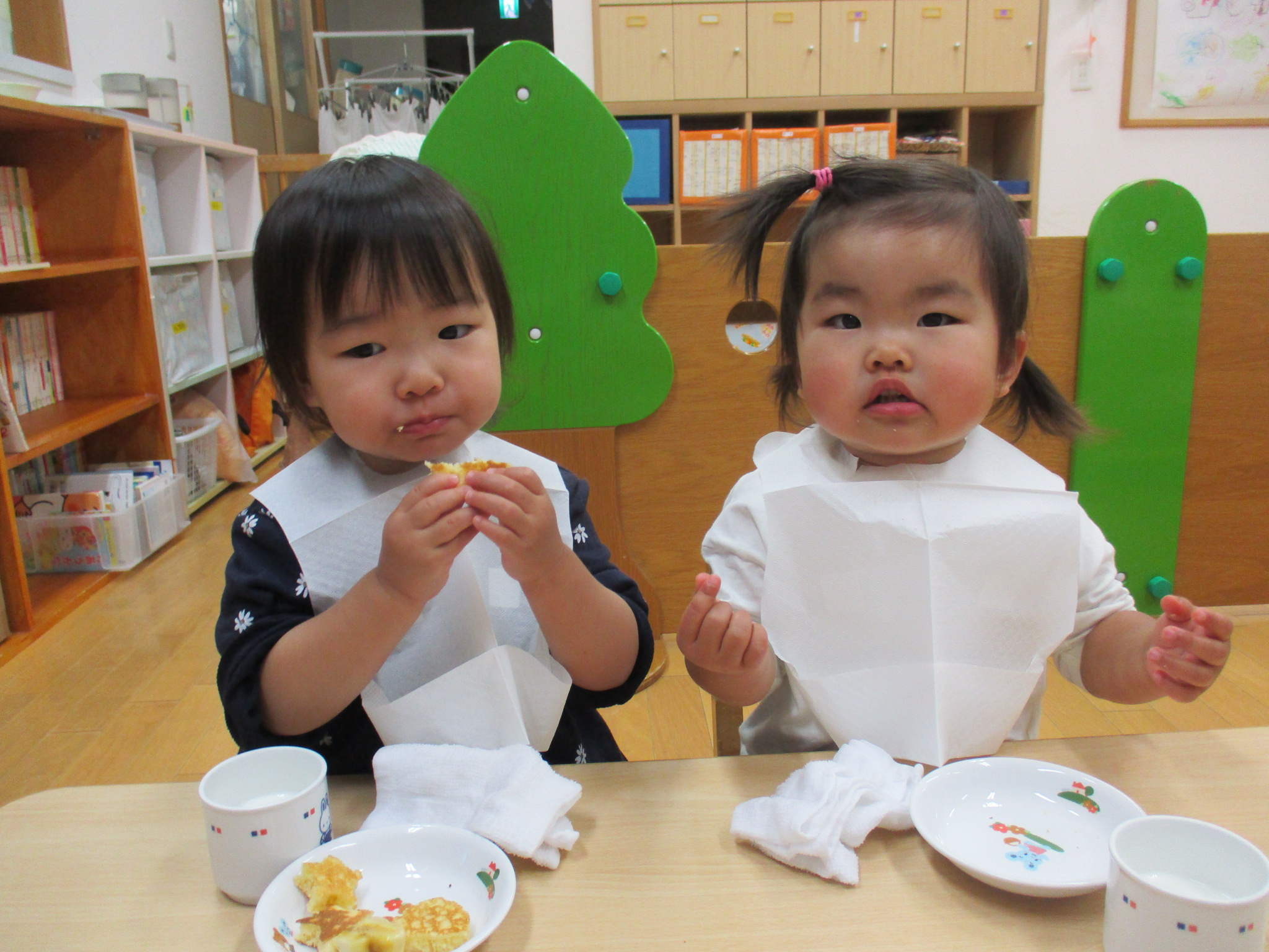 おやつもハロウィンバージョンでお星さま型のホットケーキとバナナで楽しい1日になりました☆