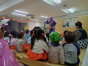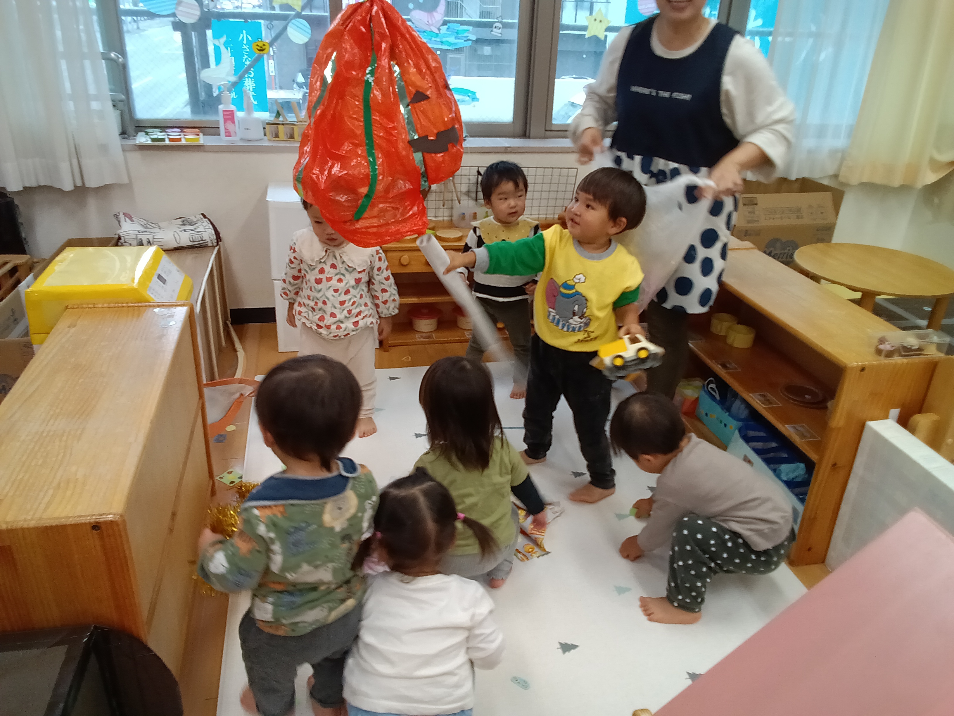 ハロウィン当日は仮装をして、初めて全員で本園に遊びにいきました♪