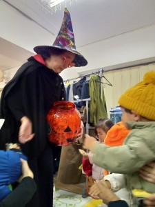 魔女さんにびっくりしながらもお菓子をもらいました!