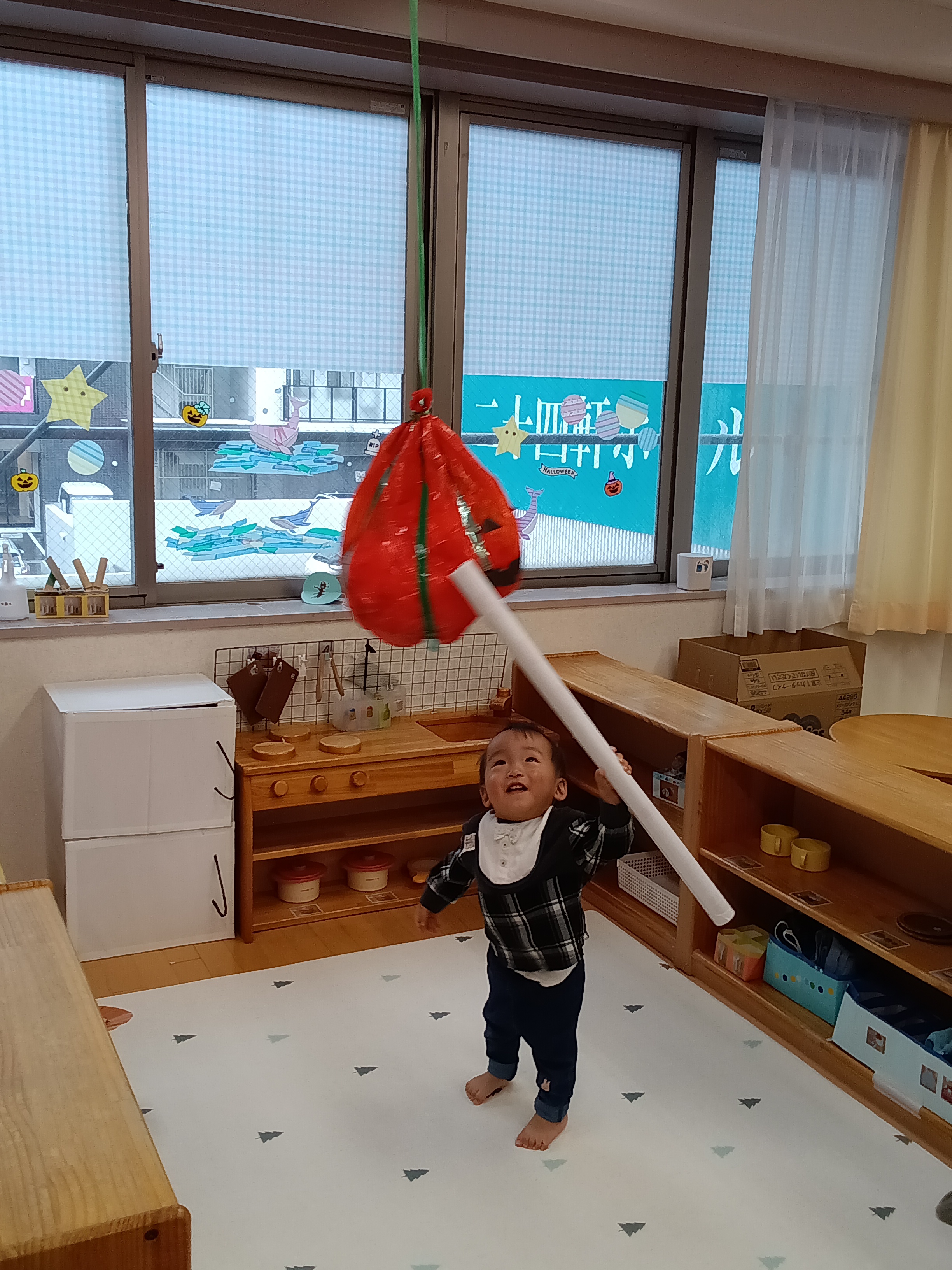 みんなで順番に棒を持ってピニャータを楽しみました☆