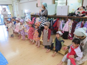 次は、黄組さんと青組さん。もちつきの歌も、とても上手に楽しんで歌っていました。