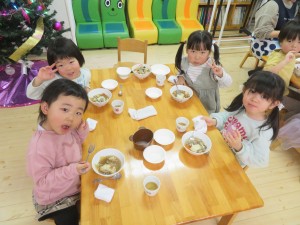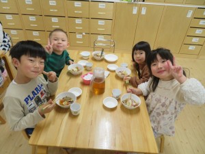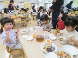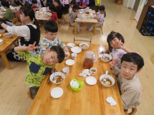 「おいしいね~!」と大喜びで、たくさんおかわりしてお腹いっぱい、大満足な子ども達でした(*^^)v
