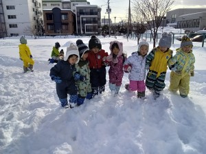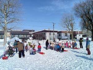 今年は大雪で、前日には緑組、黄組でさいわい公園のグラウンドの雪踏みをしました。