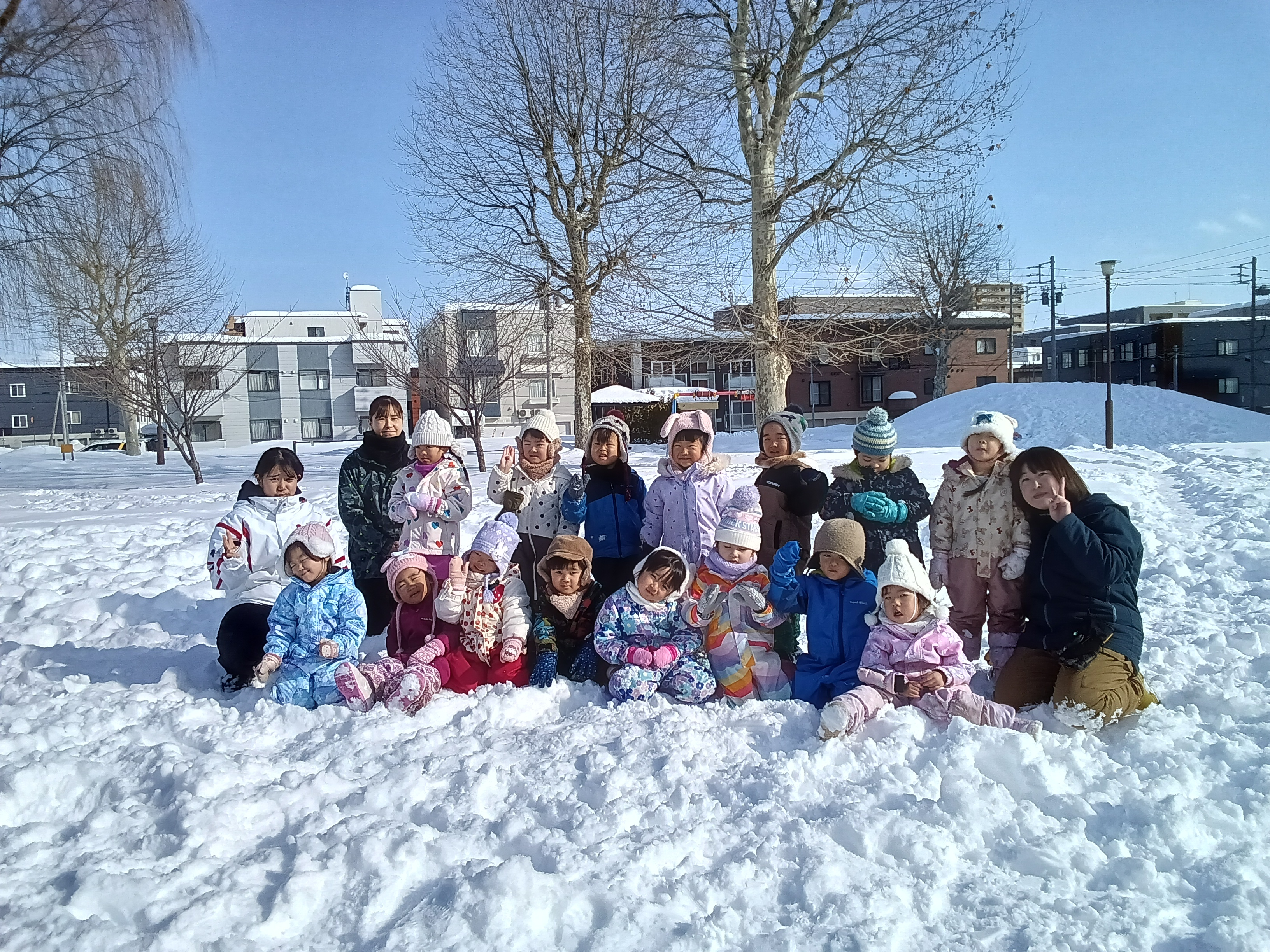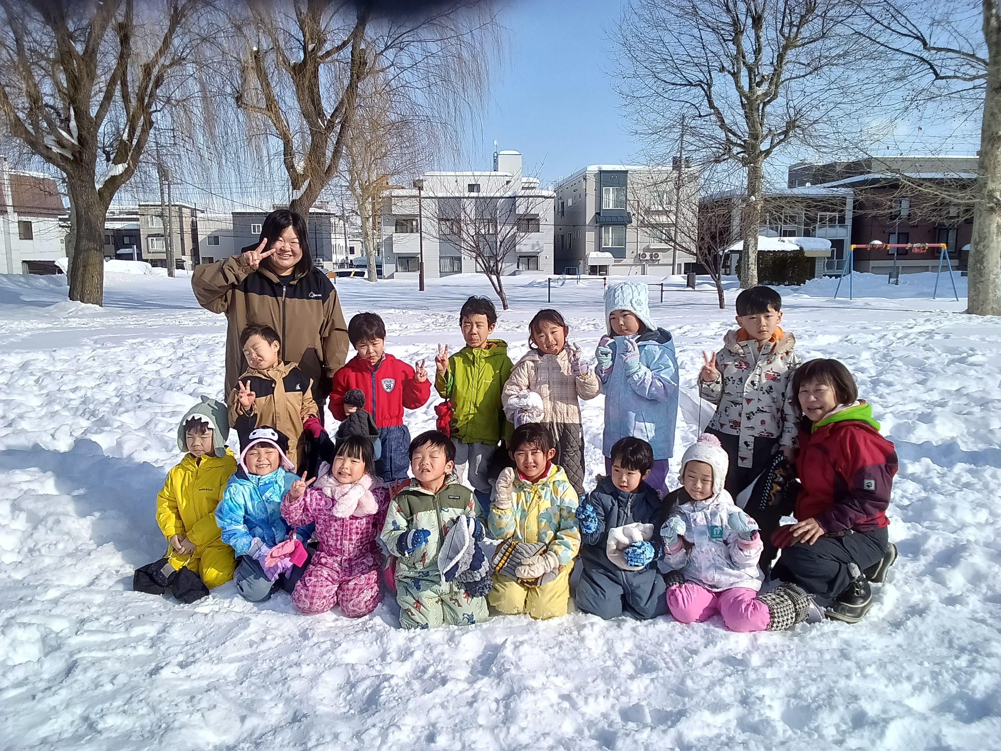 今日はとても良い天気で、気持ちの良い青空の下、雪中運動会を行うことができました!