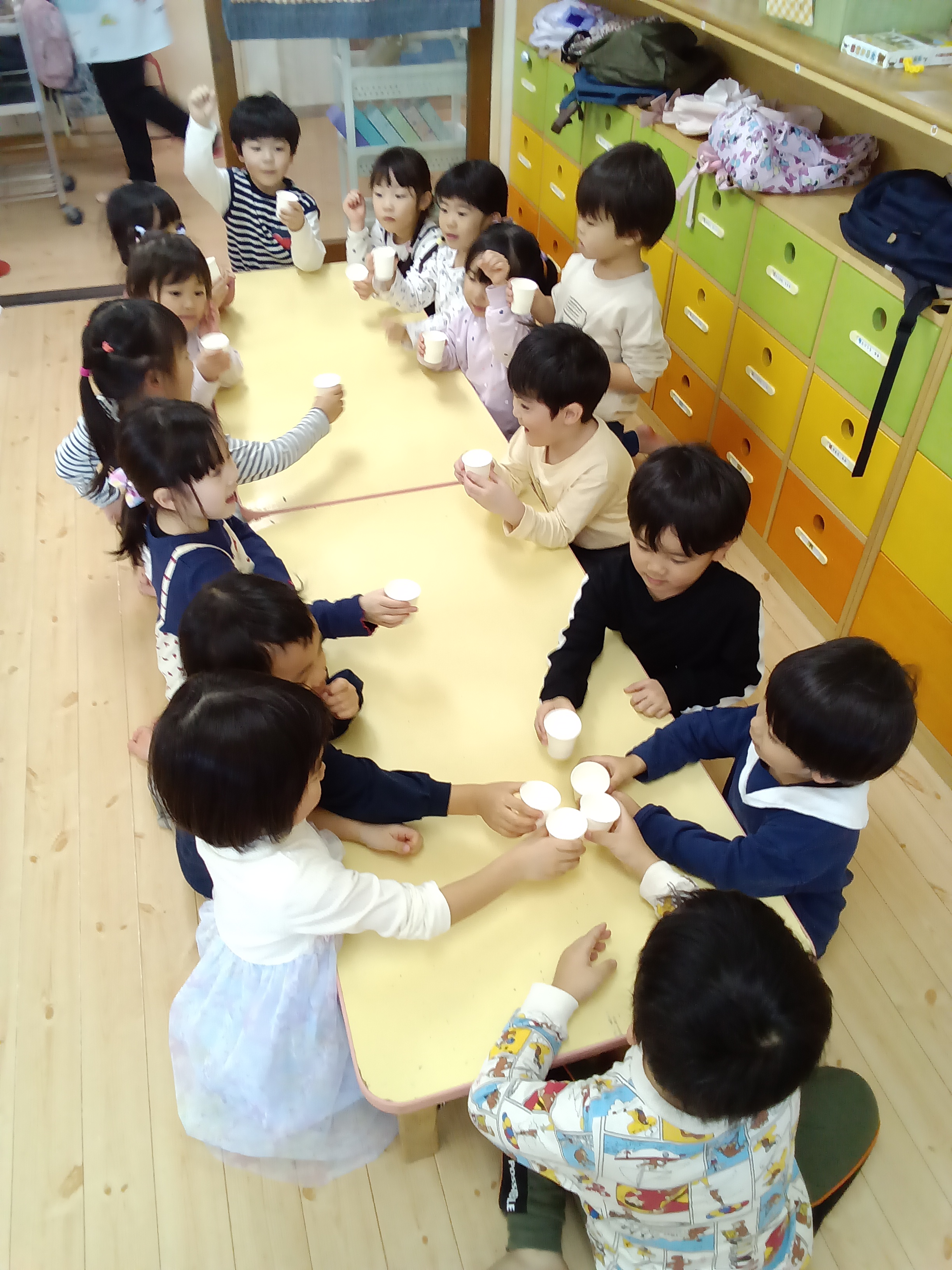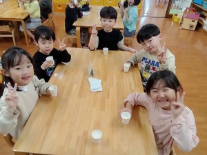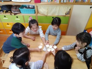 保育園に戻ってからは、給食さんが作ってくれた「ミルク甘酒」を飲みました。