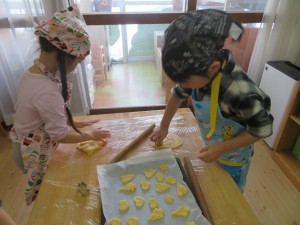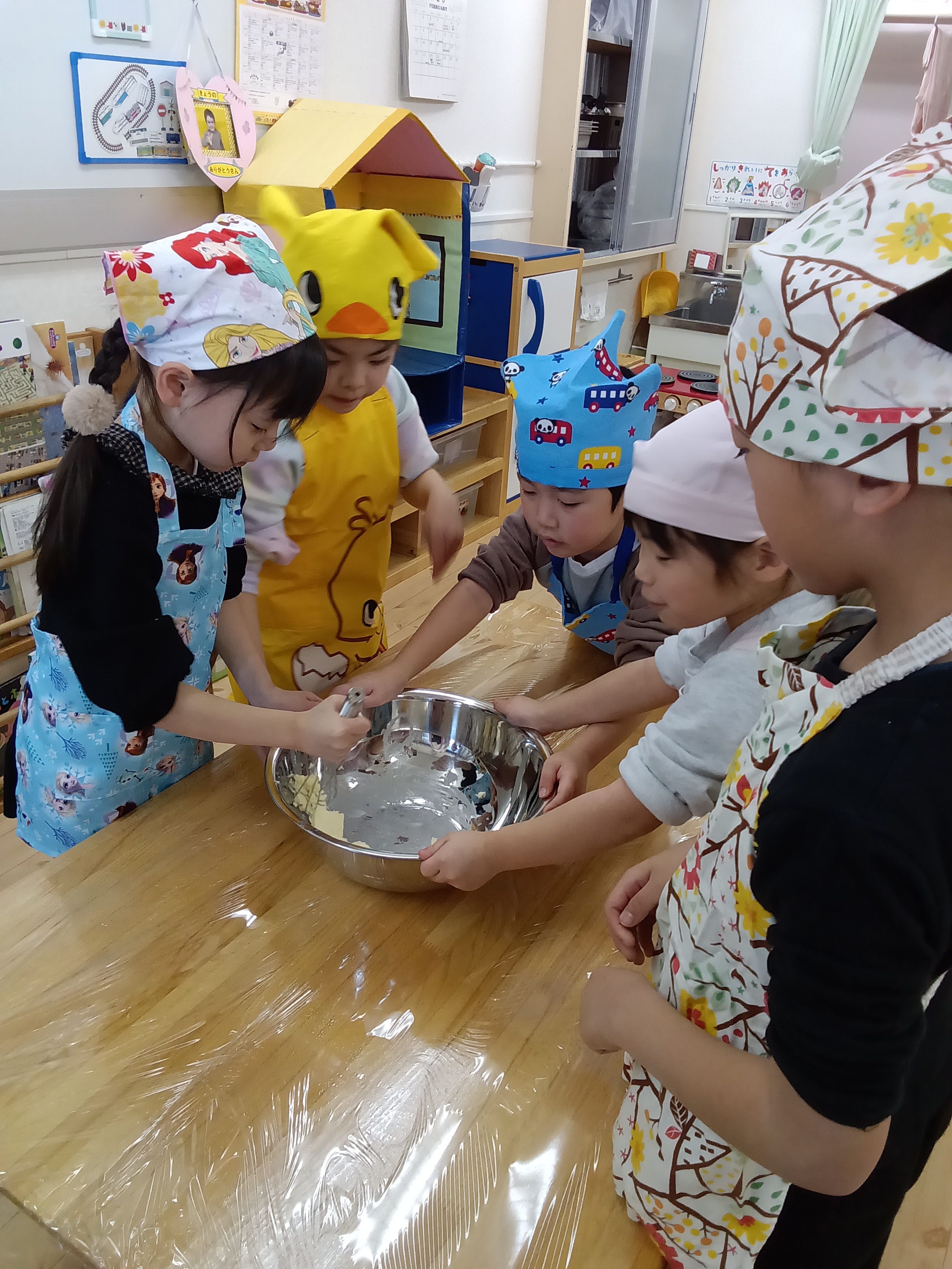 みどり組は1月21日、あお組は2月4日にクッキー作りをしました。