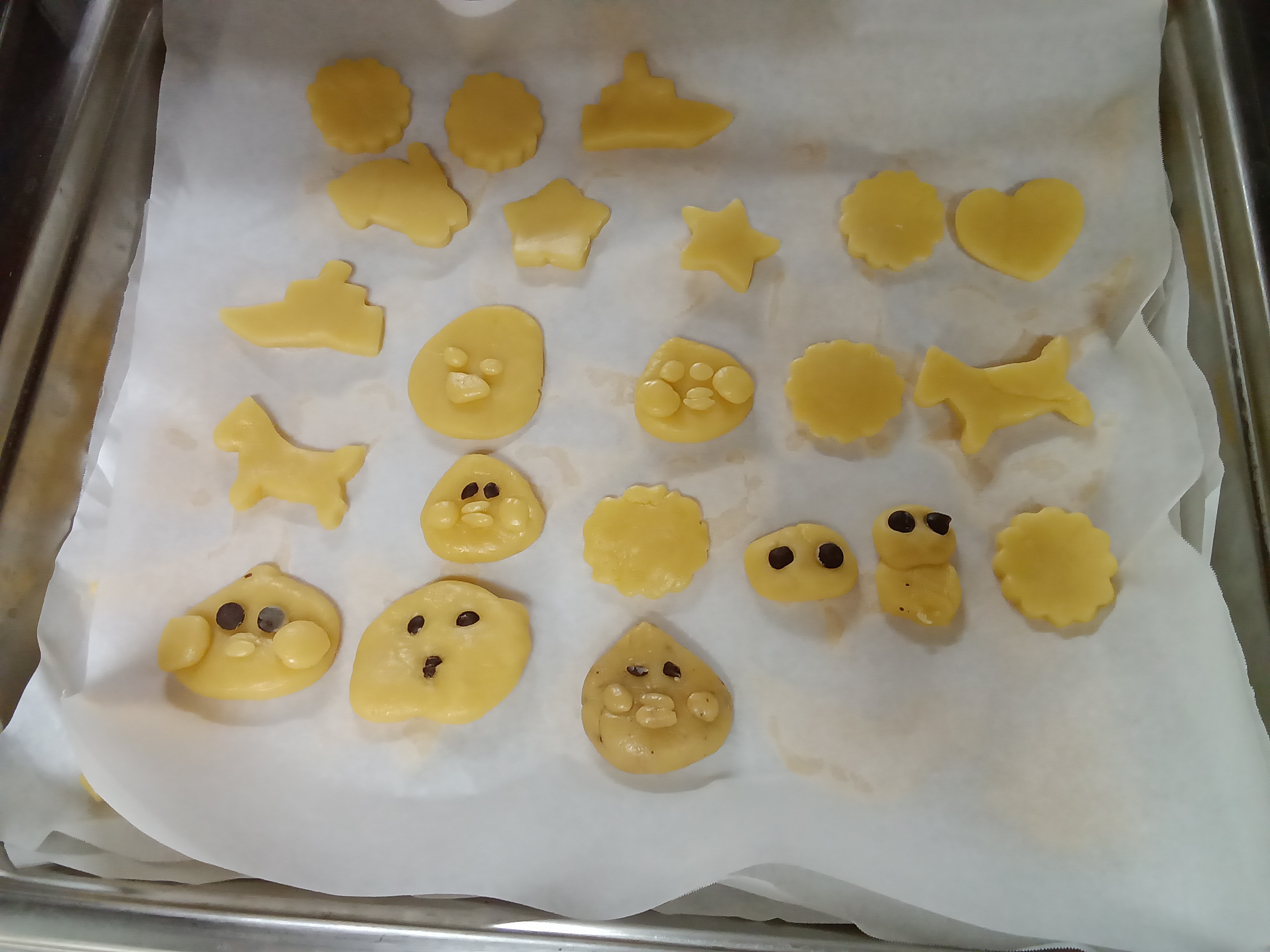 とても上手に型抜きができ、色々な形のクッキーができあがりました。