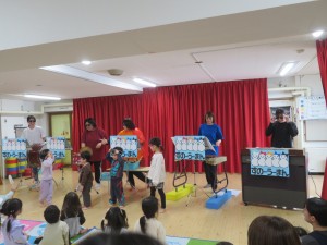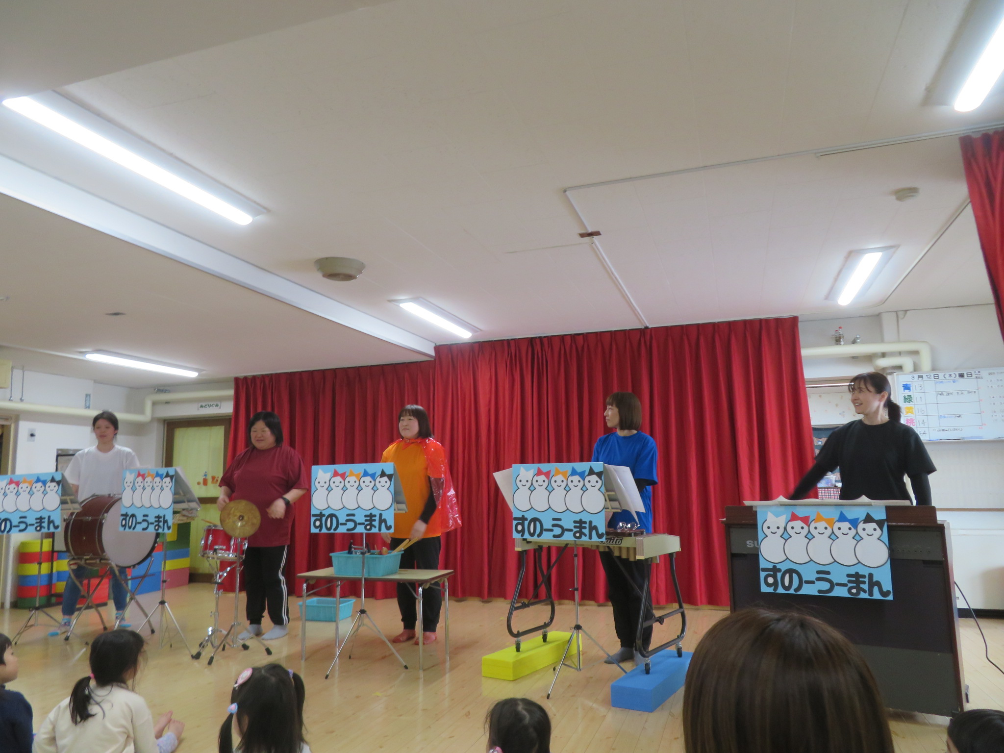 保育士の出し物は「スノーウーマン」による器楽演奏をしました。