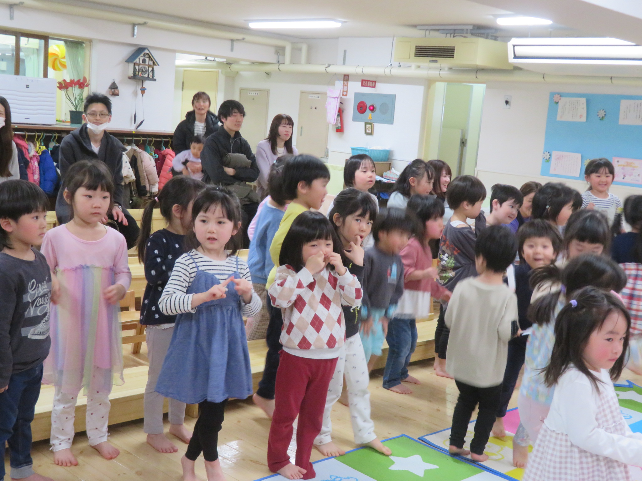 3月のお誕生児は桃組1名、黄組1名、緑組1名、青組1名の計4名でした。