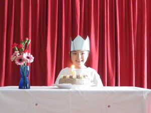 最後の曲は誕生児がサングラスをかけ、カリスマ隊になって前に出てきて、みんなも一緒に立ち上がって大盛りあがりで器楽演奏に合わせ「カリスマックス」を歌って踊りました。